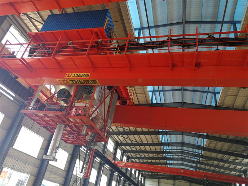 (5)其它輔助吊運工作 在小車上裝有輔助吸料管,可清掃煙道、排除粉塵;在橋架上備有10t電動葫蘆,進行燃燒器的搬運及焙燒爐的維修保養(yǎng)工作。